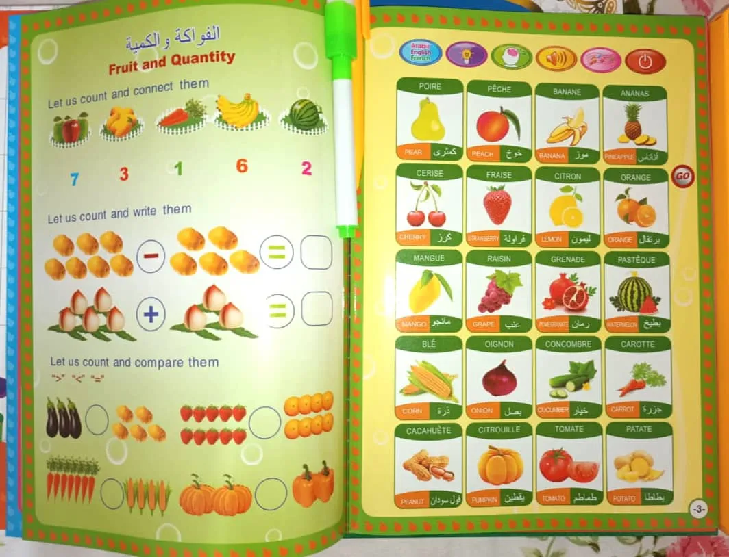 أبسط طريقة لطفلك لتعلم اللغات و الثقافة الدينية كتاب الكتروني الناطق لثلااثة لغات الاجليزية الفرنسية و العربية مع أدعية دينية للطلب أدخل معلوماتك في الخانات أسفله 👇