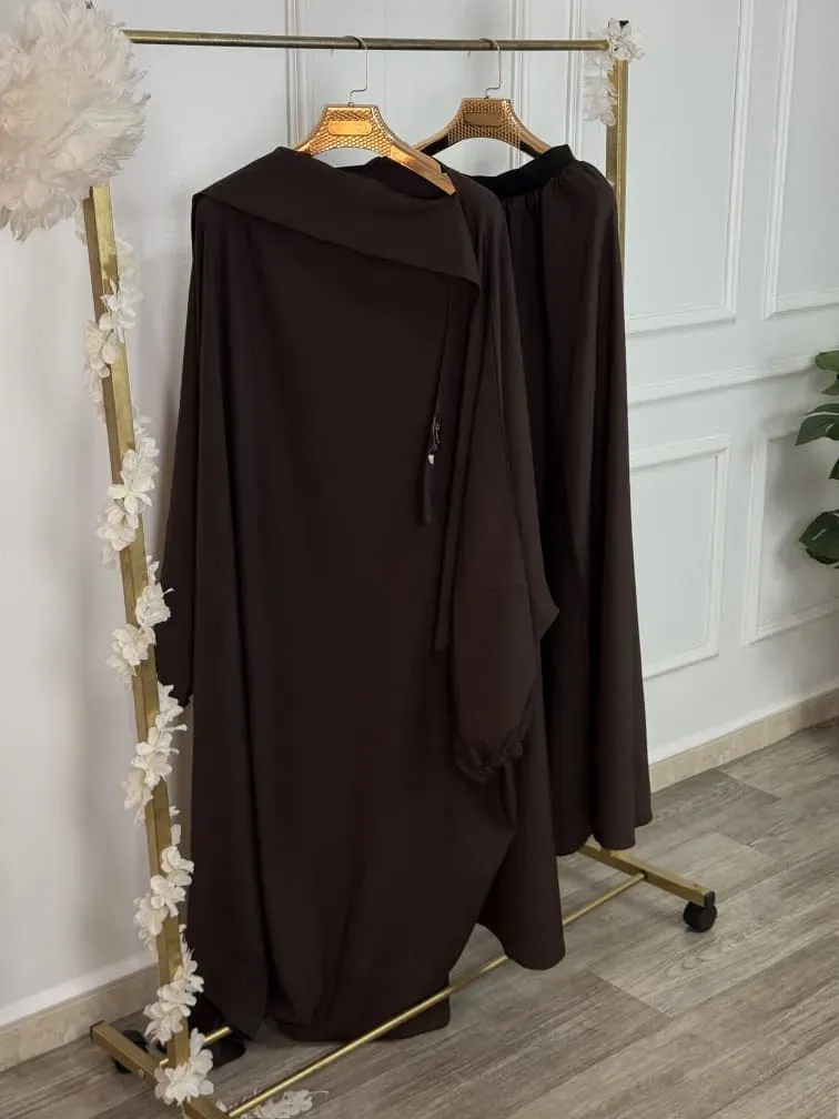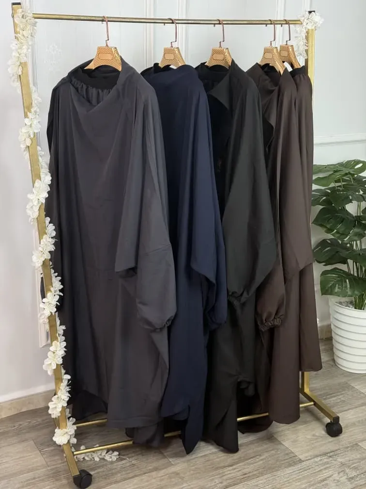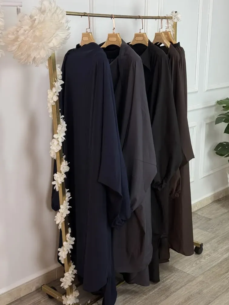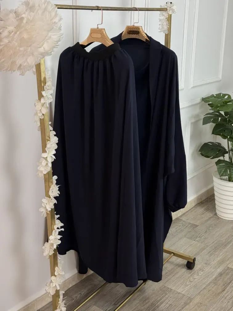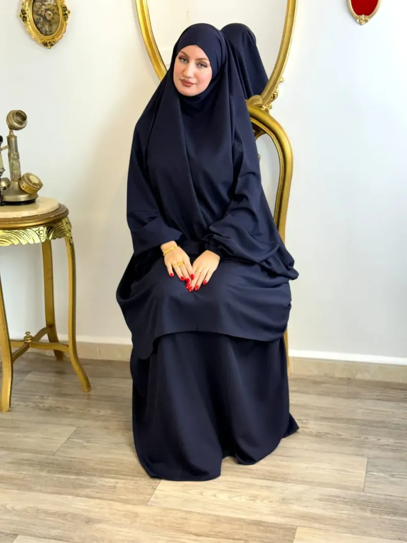 تألقي بحجاب ذو قطعتين تنورة مع اسدال ايجي طويل و عريض مستورة في نفس الوقت ماشي ليبين الجسم ديالك مصنوع من قماش البرادا الحريري لميلصقش في الجسم ديالك او ادرلك حكة متوفر في اربعة الوان و المقاسات 1 2 3 (s حتى xxl) السعر 4500دج