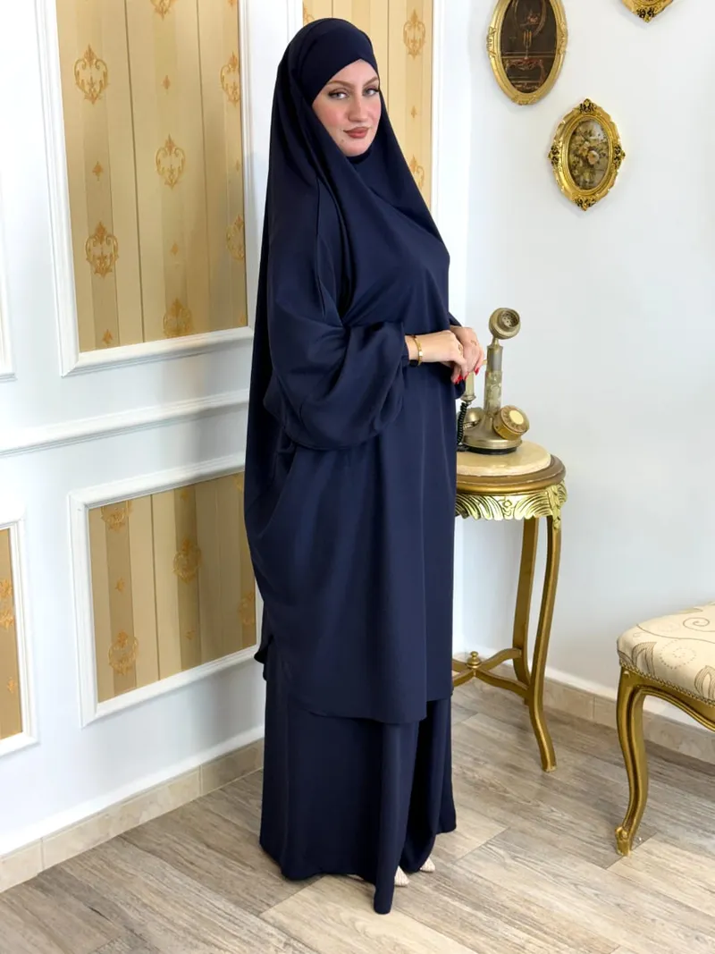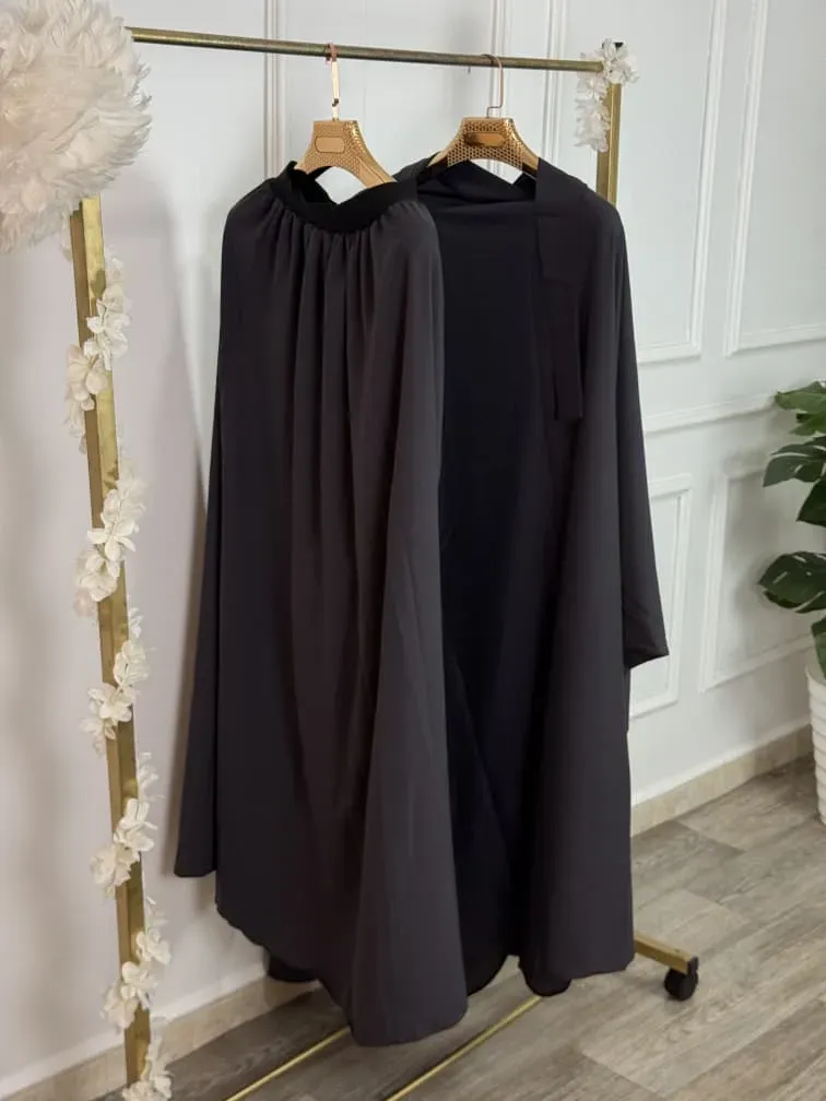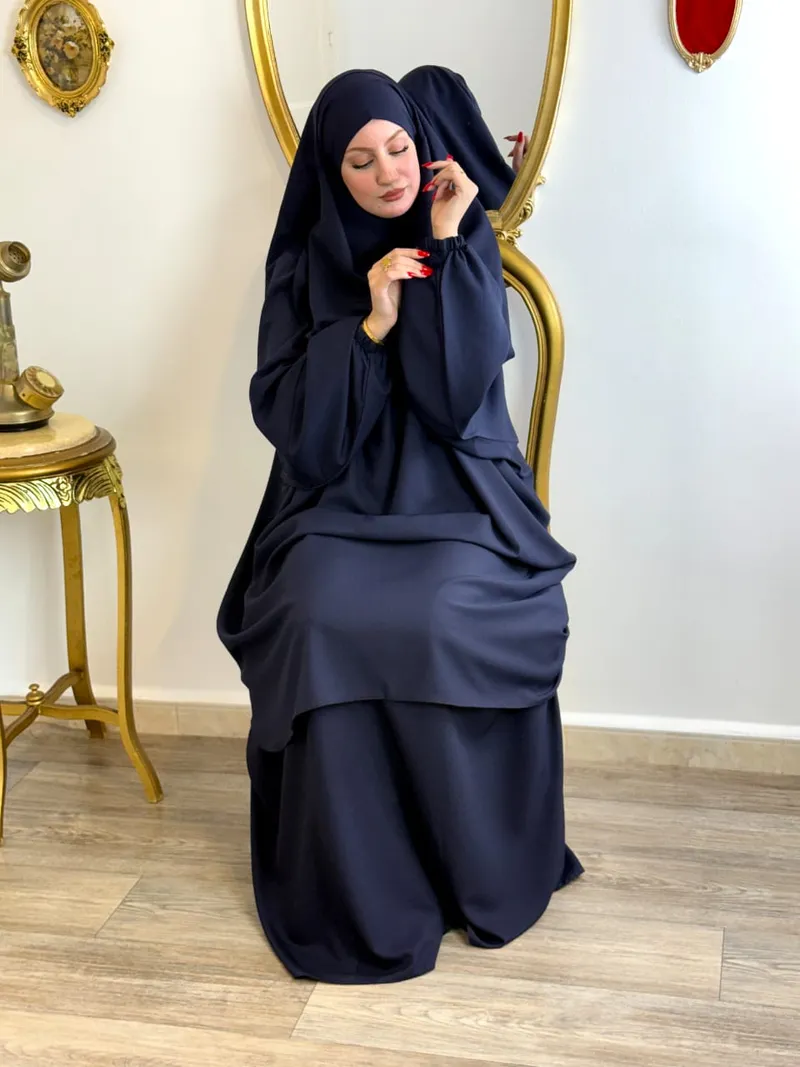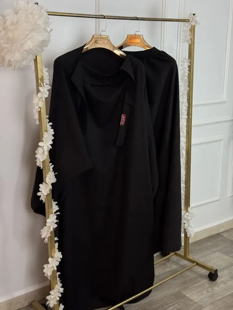 تألقي بحجاب ذو قطعتين تنورة مع اسدال ايجي طويل و عريض مستورة في نفس الوقت ماشي ليبين الجسم ديالك مصنوع من قماش البرادا الحريري لميلصقش في الجسم ديالك او ادرلك حكة متوفر في اربعة الوان و المقاسات 1 2 3 (s حتى xxl) السعر 4500دج